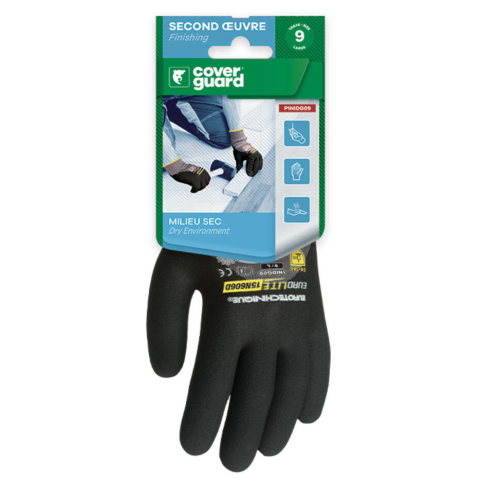 EUROLITE ÖKÖLCSONTIG FEKETE MIKROHAB. NITRIL+PETTY_BLISZT_9 * 15-ös kötésű, erős szakítás- és kopásállóságú szürke nylon / spandex * ökölcsontig fekete szellőző mikrohabosított nitrillel mártott, tenyerén csúszásbiztos pettyekkel * könnyű, kieme