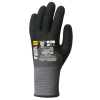 EUROLITE ÖKÖLCSONTIG FEKETE MIKROHABOSÍTOTT NITRIL+PETTY_8 Szürke, varrás nélküli, poliamiddal megerősített, 15-ös kötésű kesztyű. A tenyérrészen nitil mikrohab pettyekkel és kötött mandzsettával * OEKO-TEX® STANDARD 100 minősítés, CQ 1301/1, IFTH va
