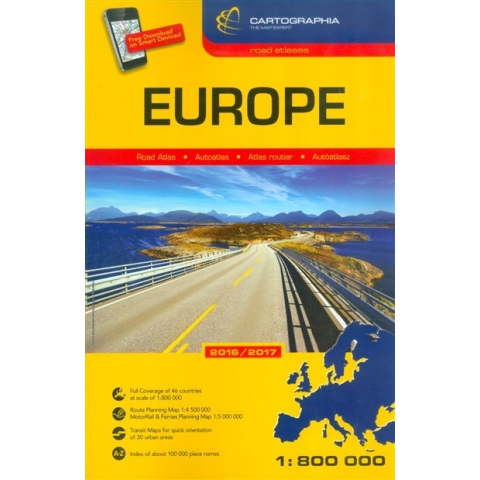 Teljes Európát - a skandináviai Lappföldtől az ibériai Gibraltárig, illetve a törökországi Antalya-ig - az 1:800 000 méretarány által megengedett részletességgel, egyedülállóan egységesen ábrázoló atlasz kiválóan alkalmas az autópályáktól kezdve az alsóbb