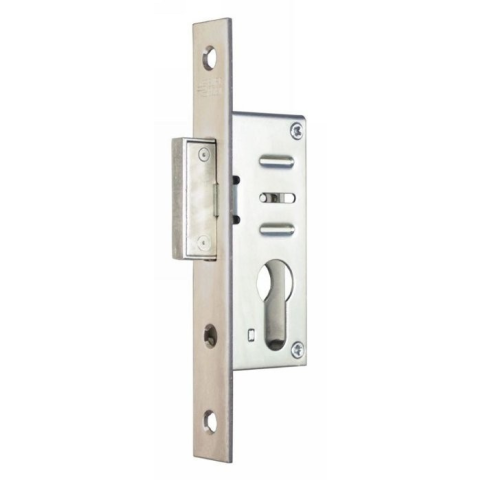 Europortál reteszzár 25/22 DIN szabványnak megfelelő hengerzárbetéttel működtethető bevéső reteszzár. Ajánlott alumínium, acél és PVC profilokba. A retesz átfűrészelés ellen védett. Az előlap anyaga korrózióálló acél. Korrózió ellen védett alkatrészek
