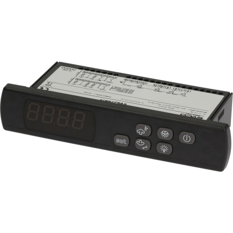 230V 50/60Hz | előlap mérete 185x38xmélység 89.5 mm | 1 relékimenet 20A a kompresszorhoz | 1 relékimenet 8A a leolvasztáshoz | 1 relékimenet 8A az elpárologtató ventilátorhoz | 1 relékimenet 8A (szobavilágítás/deresedés elleni fűtőelem | segéd kimenet) |
