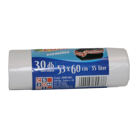 Szemteszsák fehér 53 cm x 60 cm, 30 db/roll.