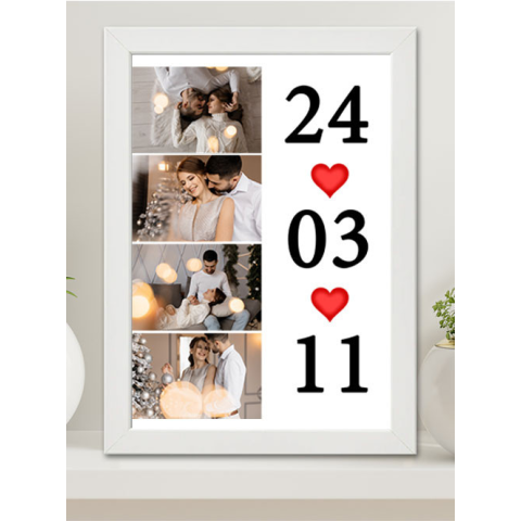 Évfordulós ajándék, A3 falikép 4 fotóval. Szerelmes ajándék barátod, barátnőd születésnapjára, névnapjára, de akár évfordulótokra is tökéletes választás. 4 darab saját fotóval, dátummal egy különleges és egyedi meglepetést szerezhetsz szerelmednek. A képk