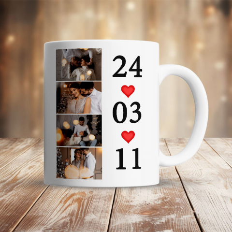Évfordulós ajándék, bögre 4 fotóval. Szerelmes ajándék barátod, barátnőd születésnapjára, névnapjára, de akár évfordulótokra is tökéletes választás. 4 darab saját fotóval, dátummal egy különleges és egyedi meglepetést szerezhetsz szerelmednek. Különböző