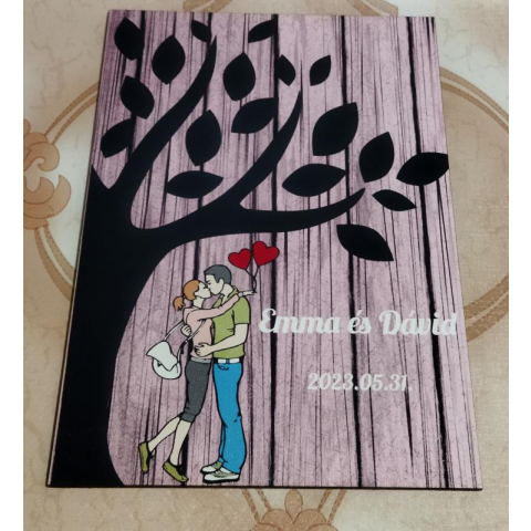 3 vastag préselt fa lapra nyomtatott színes dekoráció. Évfordulóra, Valentin napra, Nőnapra, Névnapra kedves ajándék lehet. Kérhető egyedi fotó- és szöveg hozzá. Mérete 21 * 15 cm. UV nyomtatással készült színes dekoráció. Választható talppal-álló képn
