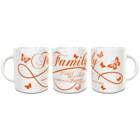 Családi bögre, szeretet soha nem ér véget. A család, ahol az élet kezdődik és a szeretet soha nem ér véget feliratos bögre az egész családnak. Kitűnő ajándék karácsonyra, házavatóra a család minden tagjának. A minta színét is Te választhatod ki. Egyedi
