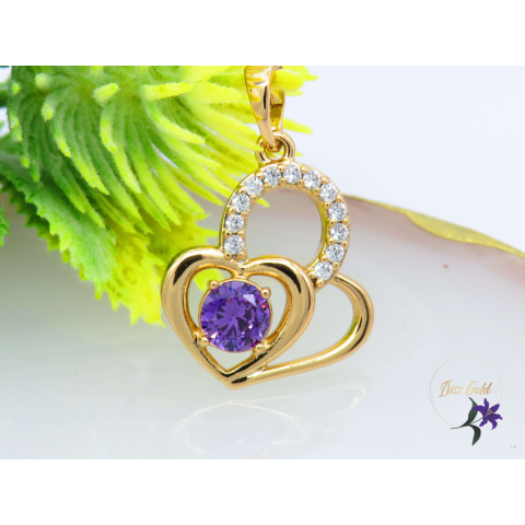 Gold Filled gyönyörű szíves medál lila cirkóna kővel Szin: 18K Medál:25x15 mm