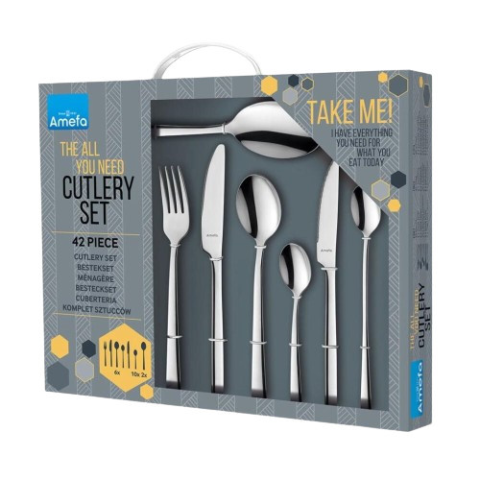 Evőeszközkészlet 42 db-os füles díszdobozban - Manille 6 db Evőkés 6 db Evővilla 6 db Evőkanál 10 db Kávés kanál 6 db Teáskanál 6db Steakkés 2 db Gabonapelyhes kanál