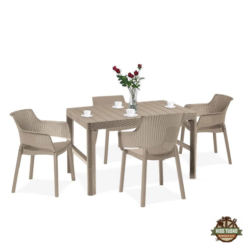 Evyon 4+1 kerti bútor garnitúra szett Termékjellemzők Az Evyon 4+1 kerti bútor garnitúra szett ideális minden környezetbe. Rendkívűl jó minőségű anyagokból készül, és minden részletre nagy figyelmet fordít , amelynek köszönhetően a legigényesebb ügyfel