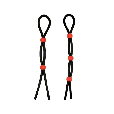 1 kép EwToys- szilikon, fekete állítható pénisz-heregyűrű - kettő/három golyóval