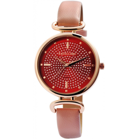 1 kép Excellanc barna műbőr szíjas női karóra csillogó piros számlappal