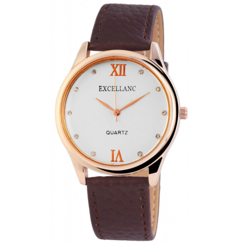 Teljes Excellanc férfi karóra barna műbőr szíjjal, fehér számlappal termékleírás