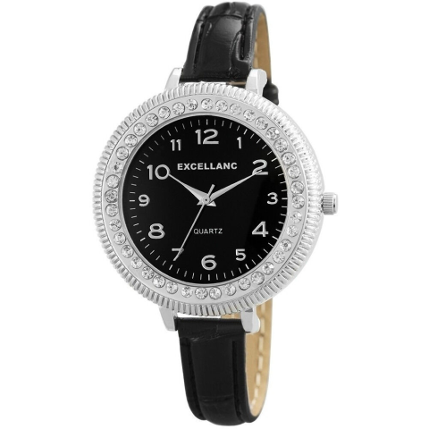 Teljes Excellanc női karóra, fekete szíjjal, strasszos termékleírás