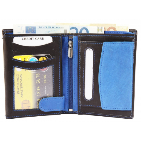 1 kép    Excellanc uniszex pénztárca valódi bőrből, 12x9 cm, fekete-kék