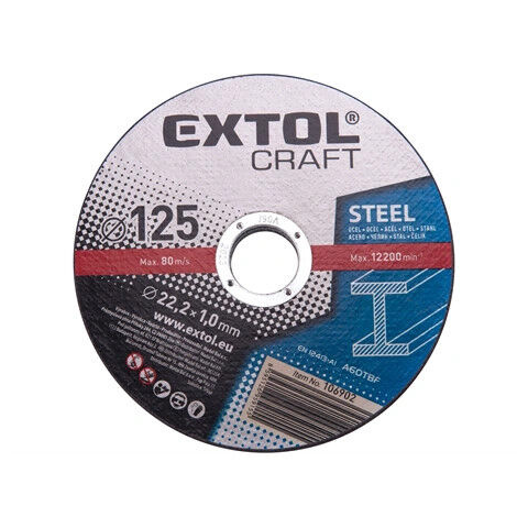 Extol Craft 125 mm-es acél vágókorong - Precíz vágás acélhoz 🧰 Az Extol Craft vágókorong ideális választás acéllemezek és egyéb acélszerkezetek vágásához. A 125 x 1,0 x 22,2 mm-es méret pontos és gyors vágást tesz lehetővé, miközben megfelel a legszi...