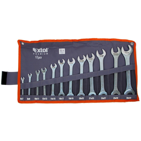 2 kép Extol Premium 12 darabos villáskulcs készlet vászon tartóban (6-32 mm)