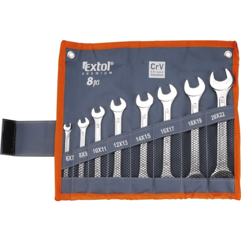2 kép Extol Premium 8 darabos villáskulcs készlet vászon tartóban (6-22 mm)