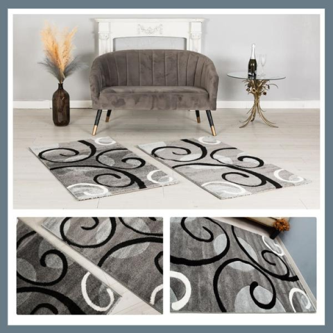 1 kép Eylül Fekete-Szürke Nonfiguratív Szőnyeg Szett 01200D-SIYAH-GRI-SZETT1