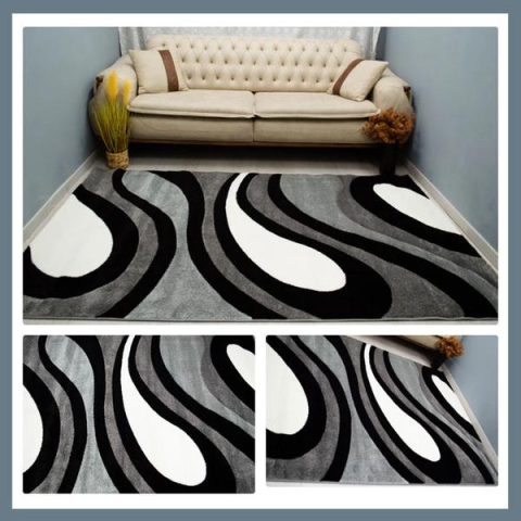 Eylül Szürke-Fekete Hullámos Mintázatú 120x170 Szőnyeg 01202D-SIYAH-GRI-120170Anyagösszetétel: PolipropilénHátsó rész anyag: JutaSzálhossz: 1,2cmSzálsúly (kb): 1050g/m2-tőlÖsszsúly (kb): 2100g/ m2-tőlEgyéb jellemzők:• Antisztatikus • Antiallergén • Padlófűtés esetén is leteríthetőFelhasználás: • Száraz, pormentes felületre • Normál forgalmú otthoni helyiségek • Kisforgalmú irodák, illetve intézményekTisztítás: Lehet szárazon és nedvesen is!