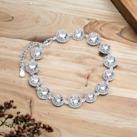 Teljes Ezüst (925) Női divatos karkötő gyönyörű fehér cirkónia termékleírás