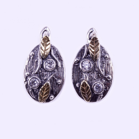1 kép Ezüst aranyozott, antikolt cirkónia köves fülbevaló "levél"
