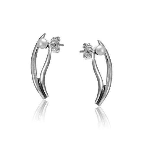 Részletek Oxidált ezüst Athina női fülbevaló, gyönggyel díszítve. Az oxidált Athina fülbevaló fekete sterling ezüstből készült. Az oxidálási eljárás során jellegzetes sötét színt kap, mely kopása esetenként előfordul de ilyenkor is inkább egyediséget köl