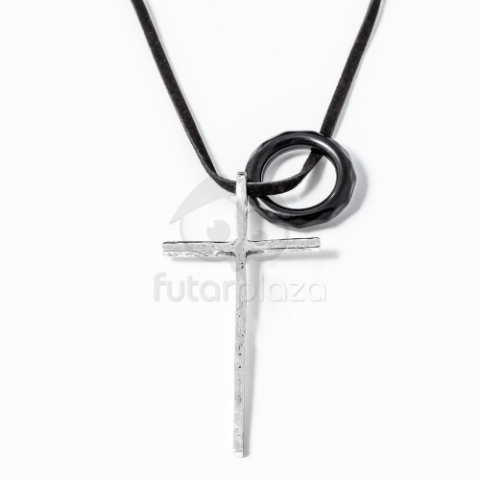 Ezüst bevonatos kereszt bőrláncon jwr-1162