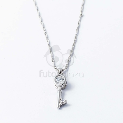 1 kép Ezüst bevonatos kulcs medálos nyaklánc fehér kővel jwr-1355