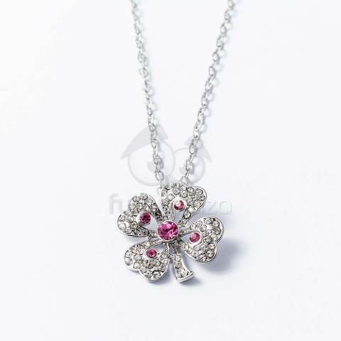 1 kép Ezüst bevonatos lóhere medálos nyaklánc pink jwr-1336