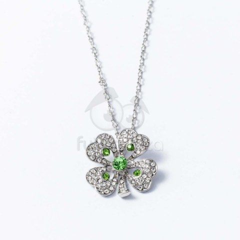 1 kép Ezüst bevonatos lóhere medálos nyaklánc zöld jwr-1334