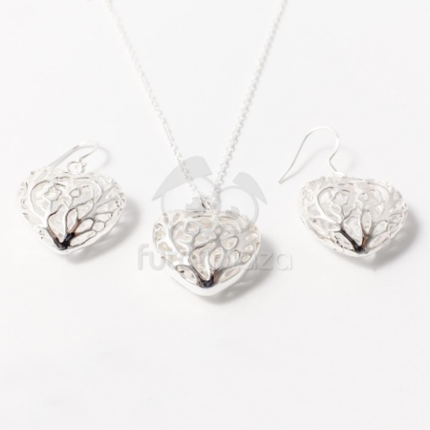Fashion Ezüst bevonatos szív függős ékszer szett Finom kidolgozású ékszer, ami feldobja hétköznapi viseletedet vagy finoman kiegészíti alkalmi öltözeted. Bátran viselheted egy üzleti találkozón vagy randin, de a mindennapi öltözéked részeként is felhívja rád a figyelmet.Szív az élet jelképe, a cselekedetek irányítója. Az azték hitvilágban az élet, a lélek, a vallás, a szeretet központja. A keresztény hagyományban a szív a lelki élet, az érzelmek helye, u