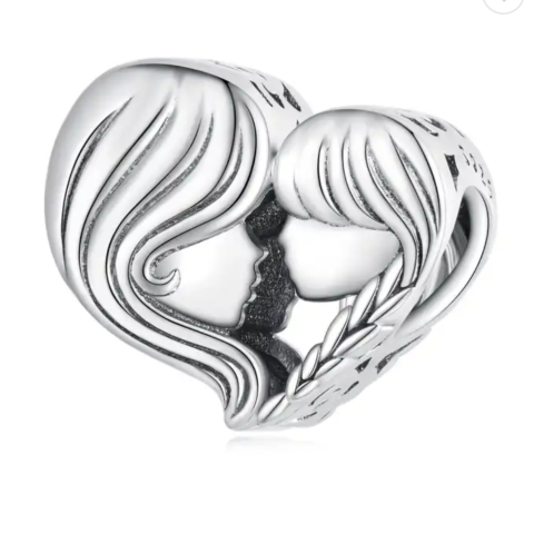 Az ezüst anya-lánya charm tökéletesen megtestesíti a különleges köteléket, amely az édesanyák és lányaik között létezik. A finoman kidolgozott szív alakú ékszerben egy anya és lánya szeretetteljes pillanata elevenedik meg, miközben homlokuk összeér, hajuk