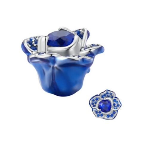 Varázsold különlegessé ékszereidet ezzel az elbűvölő, kék rózsa mintás charmmal, mely finoman csillogó cirkóniumkristályokkal van díszítve. Ez a 925 sterling ezüstből készült ékszer tökéletes választás lehet bármely karkötő vagy nyaklánc számára, hogy meg