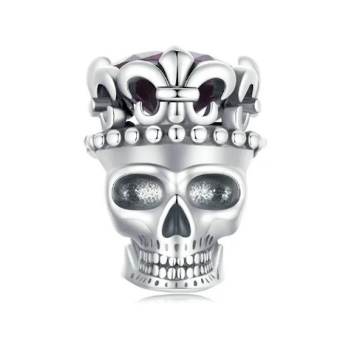 Ez a lenyűgöző ezüst charm kiemelkedő választás mindazok számára, akik szeretik a merész és kifejező ékszereket. A díszes koronát viselő koponya különleges szimbolikája ötvözi a rockos életérzést a nemes eleganciával. A charm kiváló minőségű, 925-ös sterl