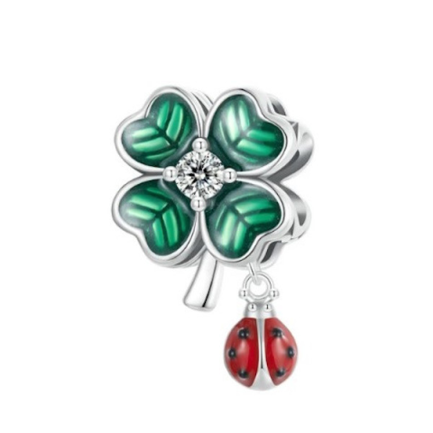 Varázsold különlegessé ékszereid az egyedi ezüst charm segítségével! A 925 sterling ezüstből készült, színes zománcozással díszített lóhere és katicabogár motívum nemcsak szerencsét hoz, hanem stílust is kölcsönöz viselőjének. A mindössze 17×10 mm méretű