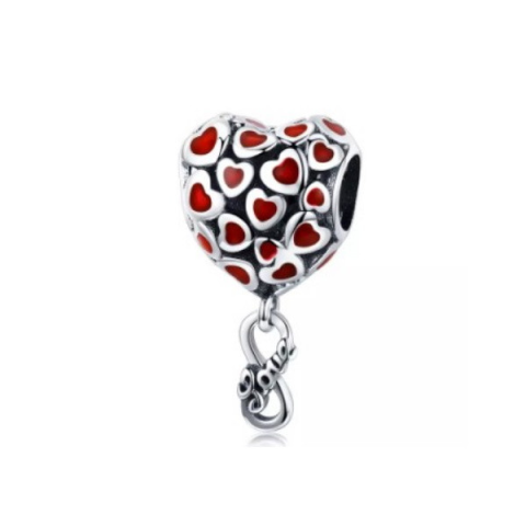 Ez a bájos, piros szívekkel díszített charm tökéletes kiegészítője lehet bármely karkötőnek vagy nyakláncnak. A 925 sterling ezüstből készült ékszer finom zománcozása elegáns és romantikus megjelenést kölcsönöz. Mérete ideális mindennapi viselésre, így kö