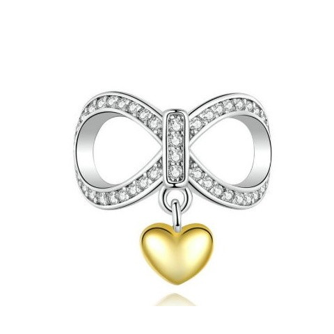 Lépj be az ékszerek varázslatos világába ezzel a kifinomult és elegáns ezüst charm-mal, amely a végtelen szeretetet testesíti meg. A 925-ös sterling ezüstből készült ékszert cirkóniumkristályok és egy aranyozott szív díszíti, amely tökéletesen megtestesít