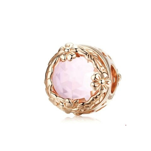 Ez a lenyűgöző ezüst charm tökéletes választás, ha valami igazán különlegeset keresel ékszergyűjteményedbe. A 925 sterling ezüstből készült darab finoman megmunkált virág- és pillangómotívummal díszített, amely elegáns rosegold bevonata révén még kifinomu