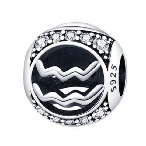 Fedezd fel az ezüst csillogás varázsát ezzel az elegáns Vízöntő jegyű charmmal! A 925 sterling ezüstből készült ékszer finom kidolgozásával és ragyogó fehér cirkóniumkristály díszítésével garantáltan magára vonja a tekinteteket. Tökéletesen illeszkedik bá