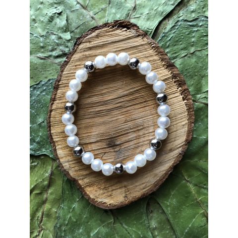 Anyaga: akril gyöngyök, fém köztesek, rugalmas damil Belső kerülete: kb 17 cm Az Ezüst Csillanás karkötő finom akril gyöngyökből és elegáns fém köztesekből áll, melyek együttesen ragyogó és harmonikus megjelenést biztosítanak. A rugalmas damilnak köszö