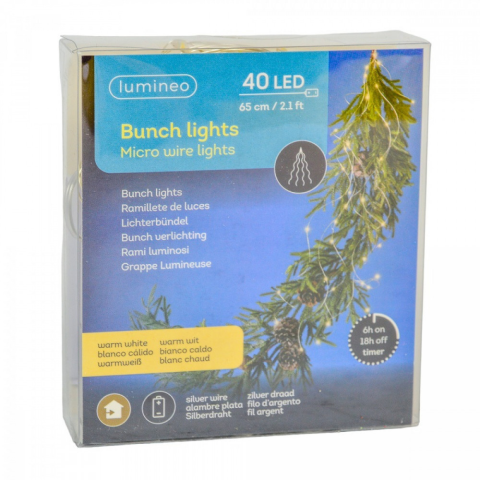 Ezüst drótkábeles korbáncs 40 LED-es elemes (elem nélkül) meleg