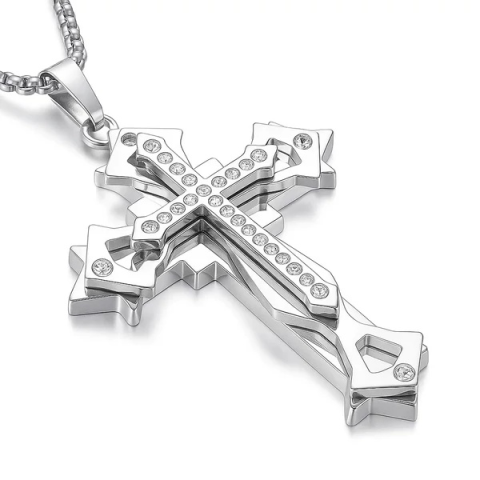 1 kép Ezüst dupla rétegű strasszköves férfi kereszt nyaklánc