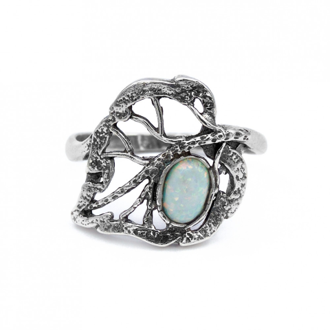 1 kép Ezüst fehér opál köves gyűrű "levél"