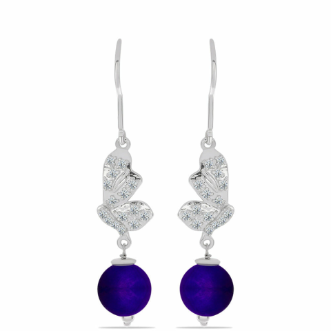 1 kép Ezüst Fülbevaló Bíbor Jádéval és Fehér Topázzal, Y59823