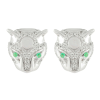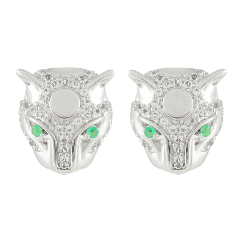 Ezüst Panter Fülbevaló Brazili Smaragddal és Fehér Topázzal ✨ Elegáns és stílusos ezüst fülbevaló, melyet egy elbűvölő panterfej díszít. A részletgazdag kidolgozás és a csillogó brazil smaragdok és fehér topázok igazán különlegessé teszik ezt az éks...