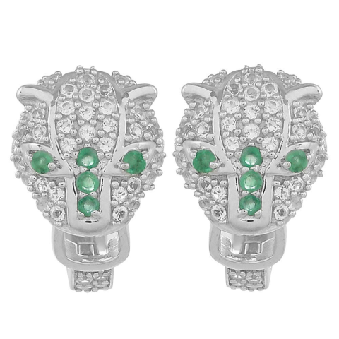 Ezüst Puma Fej Medál Fülbevaló Brazili Smaragddal és Fehér Topázzal ✨ Elegáns és stílusos ezüst fülbevaló, mely egy elbűvölő puma fej medállal van díszítve. A medált ragyogó brazil smaragdok és fehér topázok teszik még vonzóbbá. A fülbevaló tökélete...