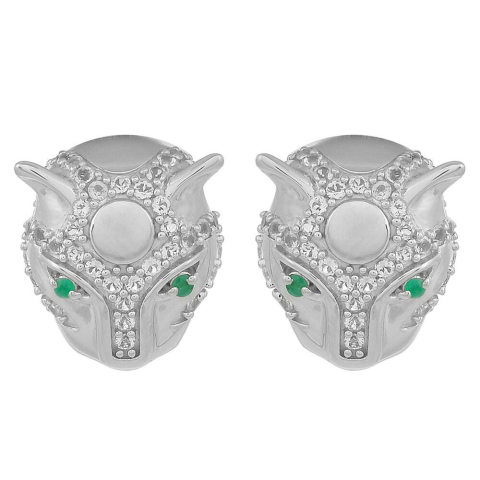 Ezüst Panter Fülbevaló Brazili Smaragddal és Fehér Topázzal ✨ Elegáns és egyedi ezüst fülbevaló, melyet kézzel készítettek Brazíliai smaragdok és fehér topázok felhasználásával. A panterfej formájú fülbevaló lenyűgöző megjelenést kölcsönöz viselőjéne...