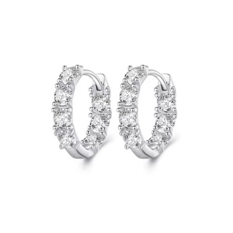 Ezüstből készült, cirkóniumkristállyal díszített karika-fülbevaló. Mérete 0.35×1.3 cm, súlya 2.1 g.