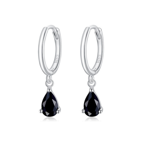 1 kép Ezüst fülbevaló csepp alakú kristállyal, fekete