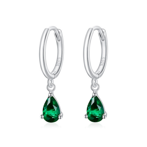 1 kép Ezüst fülbevaló csepp alakú kristállyal, zöld